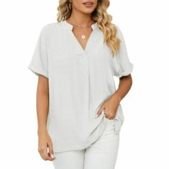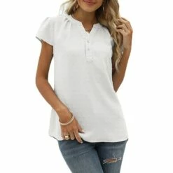 Blouse Women’s Light Blue Black White Solid / Plain Color Jacquard Daily Daily V Neck Regular Fit S
