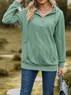Blouse Women’s Olive Green Denim Blue Black Solid / Plain Color Zip Up Daily Basic S