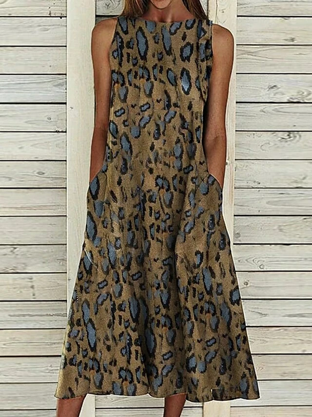 Women‘s A Line Dress Midi Dress Sleeveless Floral Pocket Cold Shoulder Print Spring Summer Round Neck Casual Vintage Going Out 2023 S M L XL XXL Cotton