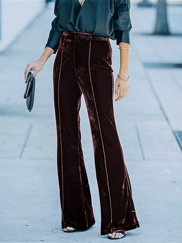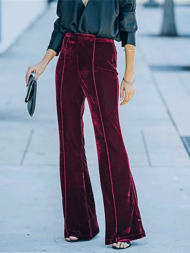 Women’s Bell Bottom Pants Trousers Full Length Fashion Streetwear Outdoor Street Black Wine S M Fall Winter