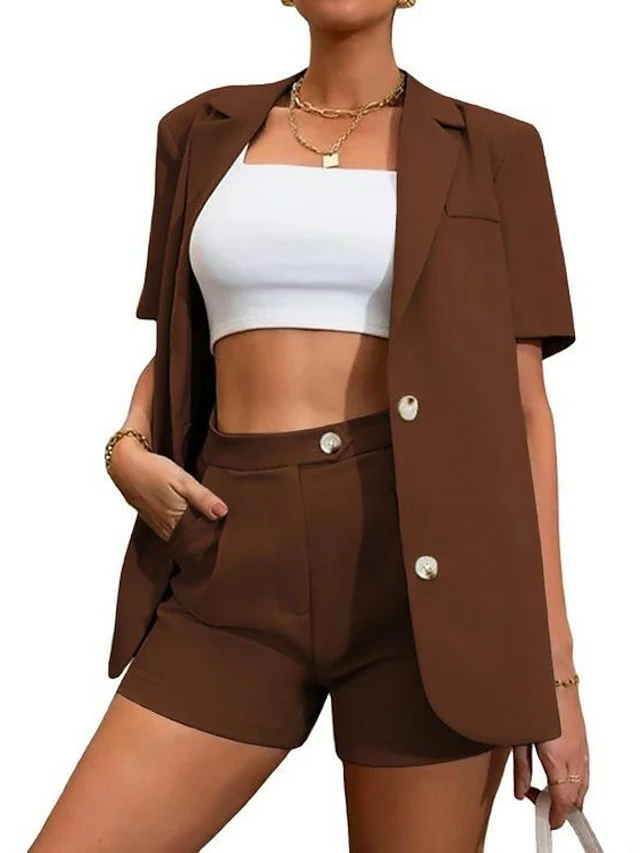 Women’s Blazer Streetwear Green Pink Office Daily Wear Corporate Clothing Patchwork V Neck Shorts S M L XL 2XL