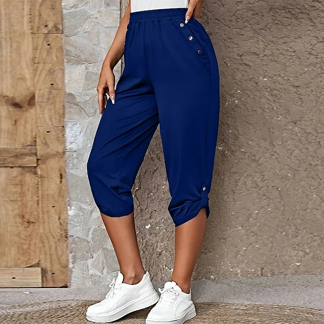 Women’s Capri Shorts Black Wine Blue Fashion Casual Daily Side Pockets Calf-Length Comfort Plain S M L XL 2XL
