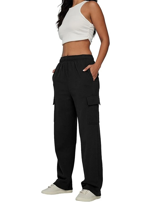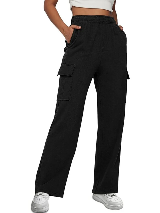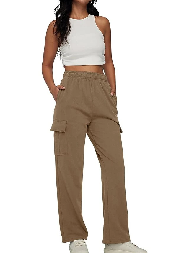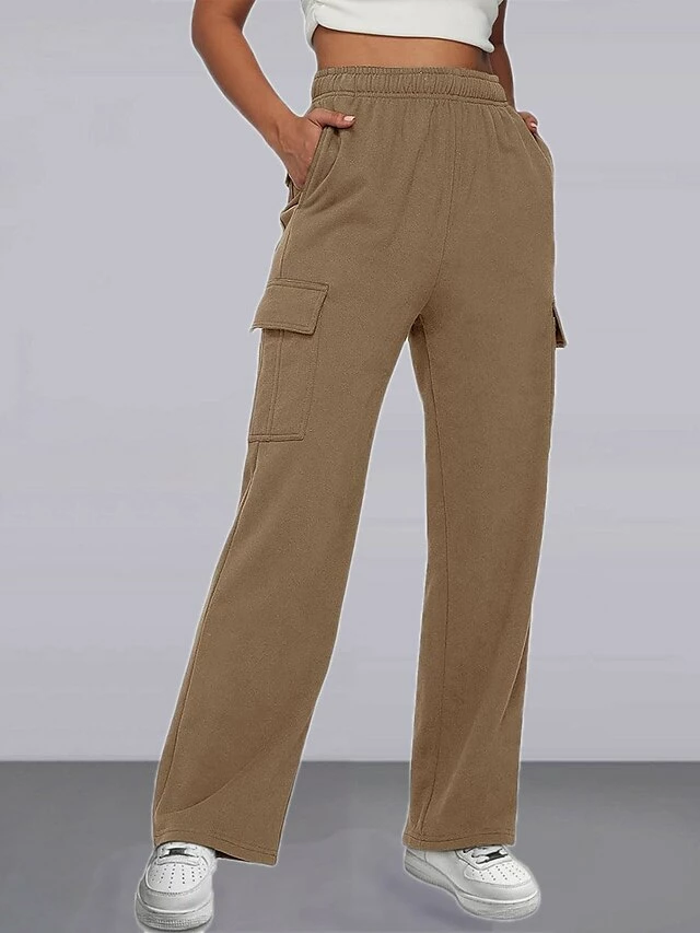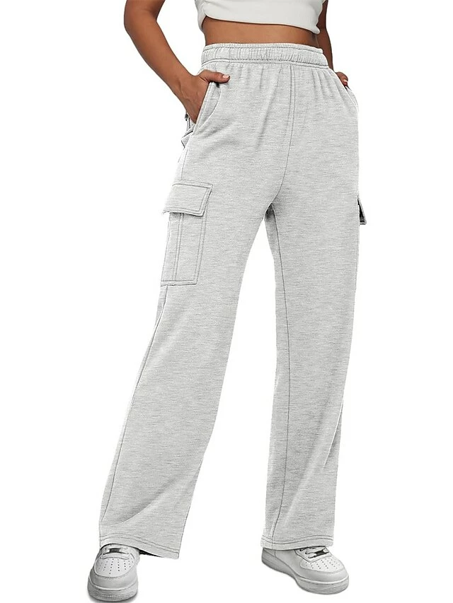 Women‘s Cargo Khaki Pants Wide Leg Trousers Full Length Active Fashion Outdoor Sports & Outdoor Light Gray Black S M Fall Winter