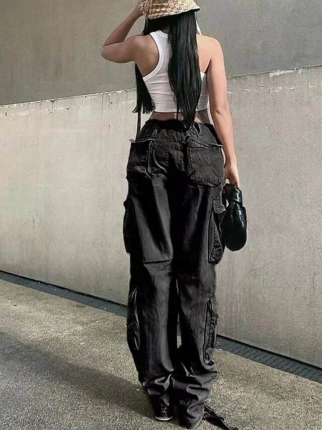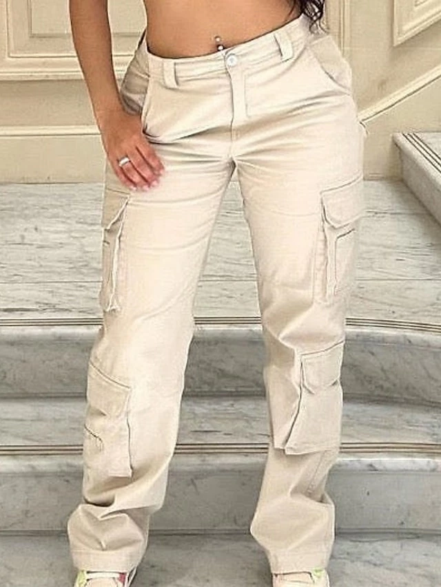 Women’s Cargo Pants Chinos Pants Trousers Full Length Cotton Micro-elastic Mid Waist Fashion Streetwear Street Daily Dark-Gray Rice White S M Fall Winter