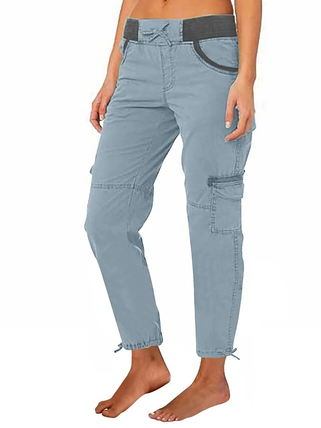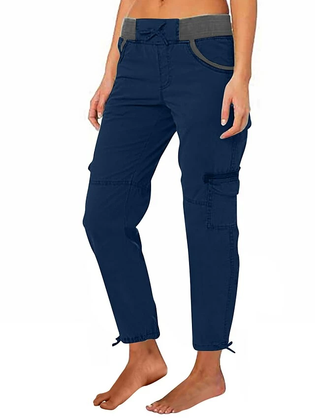 Women’s Cargo Pants Pants Trousers Full Length Cotton Pocket Micro-elastic Mid Waist Fashion Streetwear Street Daily Dark Brown Peacock Blue S M Summer Fall
