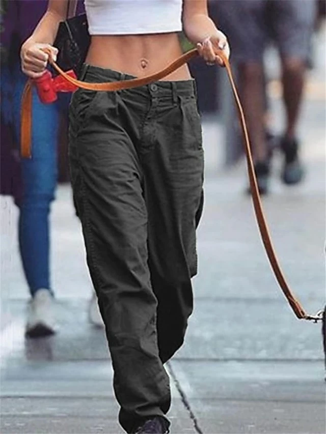 Women’s Cargo Pants Wide Leg Chinos Full Length Baggy Mid Waist Streetwear Basic Daily Black Army Green S M Summer Spring &Fall