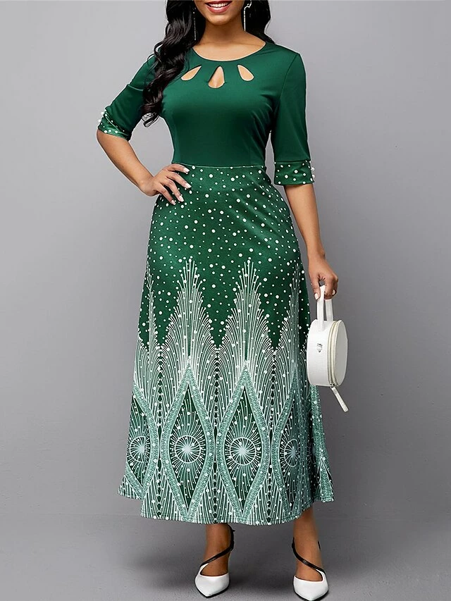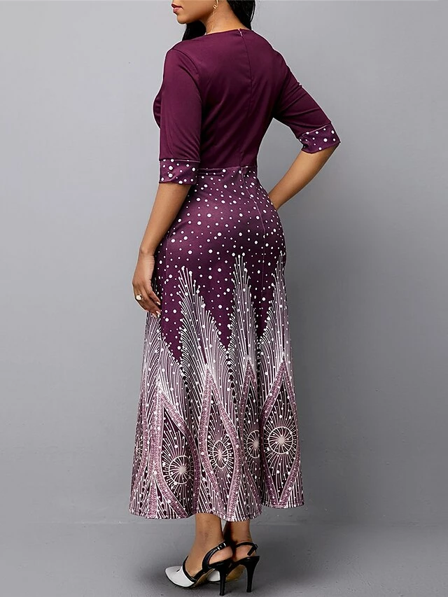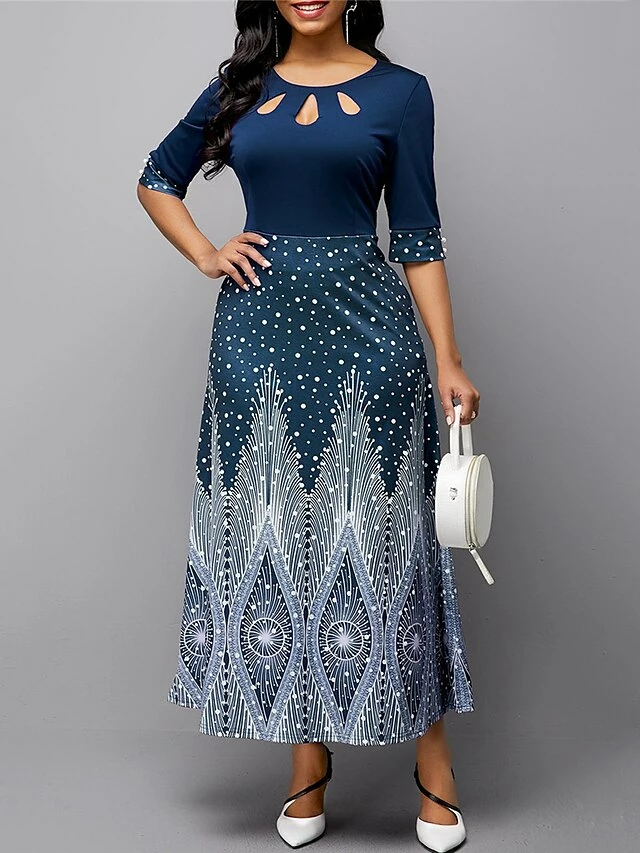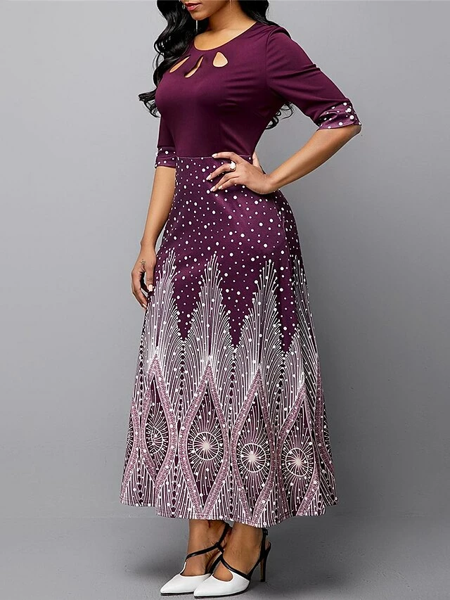 Women’s Casual Dress A Line Dress Print Dress Floral Ombre Hollow Out Print Crew Neck Long Dress Maxi Dress Fashion Streetwear Outdoor Street 3/4 Length Sleeve Slim Blue Purple Green Fall S M L XL XXL