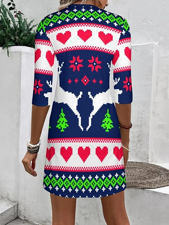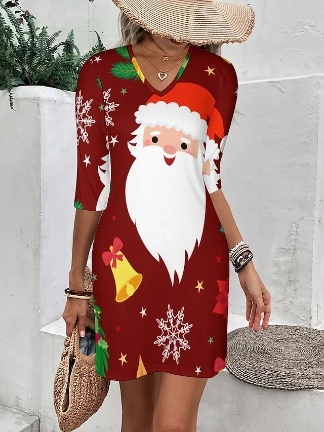 Women’s Casual Dress Christmas Dress Print Dress Santa Claus Deer Print V Neck Midi Dress Classic Christmas Daily 3/4 Length Sleeve Regular Fit White Red Green Fall S M L XL XXL