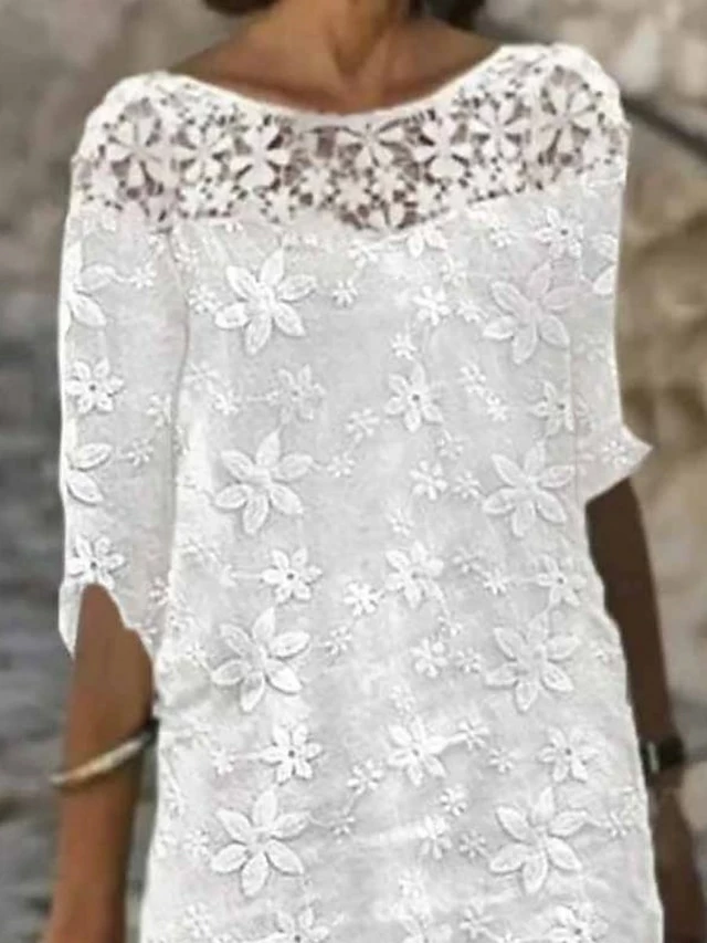 Women’s Casual Dress Cotton Linen Dress Midi Dress Polyester Modern Casual Daily Vacation Crew Neck Lace Print Half Sleeve Summer Spring Fall 2023 Regular Fit White Floral S M L XL 2XL