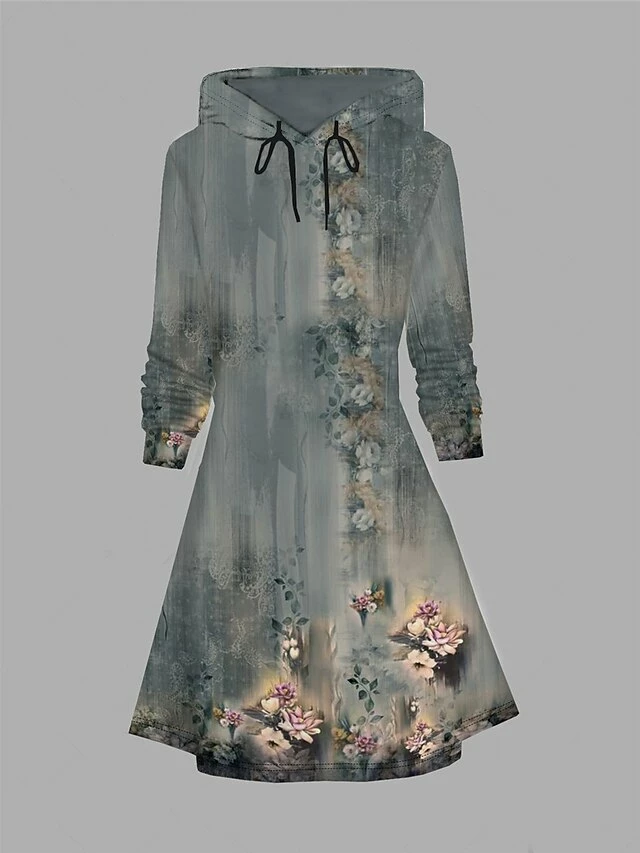 Women’s Casual Dress Hoodie Dress Winter Dress Floral Pocket Print Hooded Mini Dress Fashion Streetwear Outdoor Daily Long Sleeve Loose Fit Blue Purple Brown Fall Winter S M L XL XXL