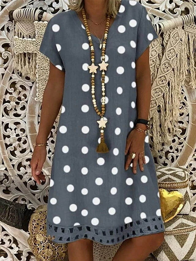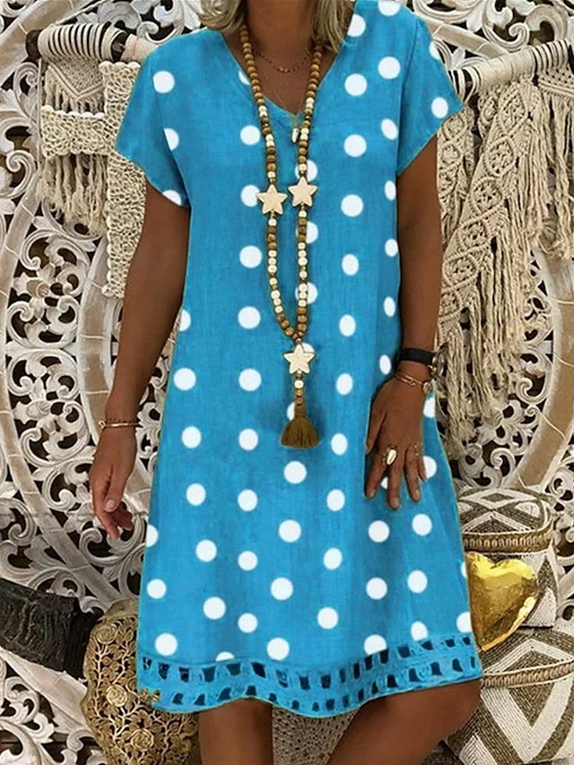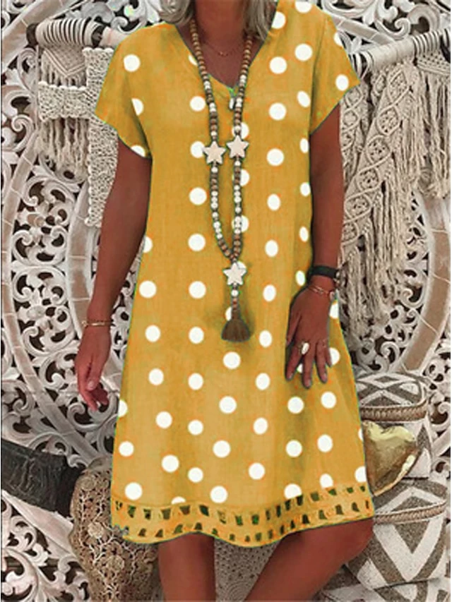 Women’s Casual Dress Shift Dress Midi Dress Yellow Blue Khaki Short Sleeve Polka Dot Print Summer Spring V Neck Basic Vacation Summer Dress Spring Dress 2023 S M L XL XXL 3XL 4XL 5XL
