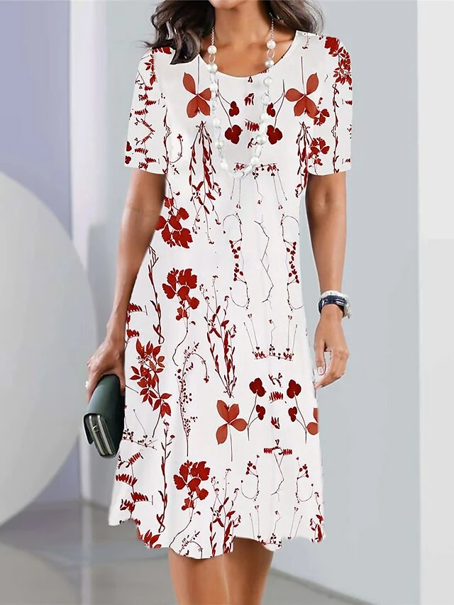 Women’s Casual Dress Summer Dress Print Dress Floral Print Crew Neck Mini Dress Fashion Streetwear Outdoor Daily Short Sleeve Regular Fit Yellow Red Royal Blue Summer Spring S M L XL XXL