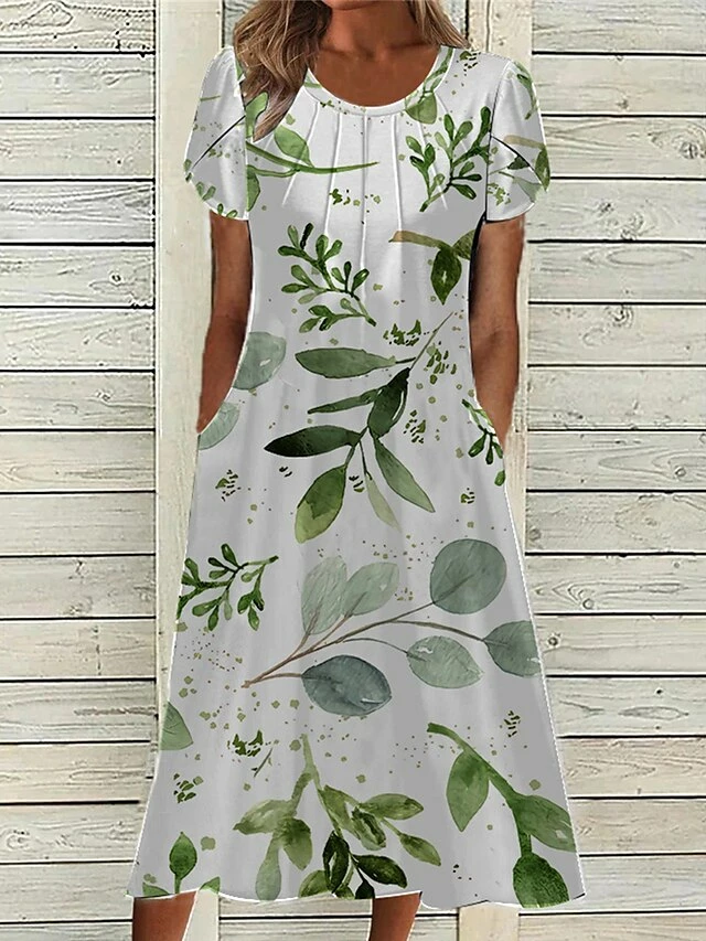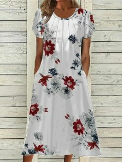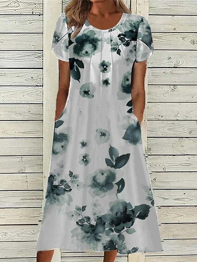 Women’s Casual Dress Summer Dress Print Dress Floral Ruched Pocket Crew Neck Midi Dress Fashion Mature Outdoor Daily Short Sleeve Loose Fit White Red Blue Summer Spring S M L XL XXL