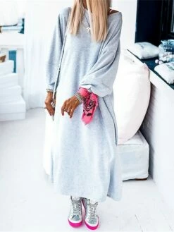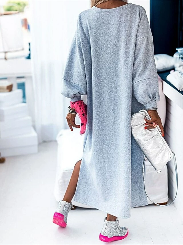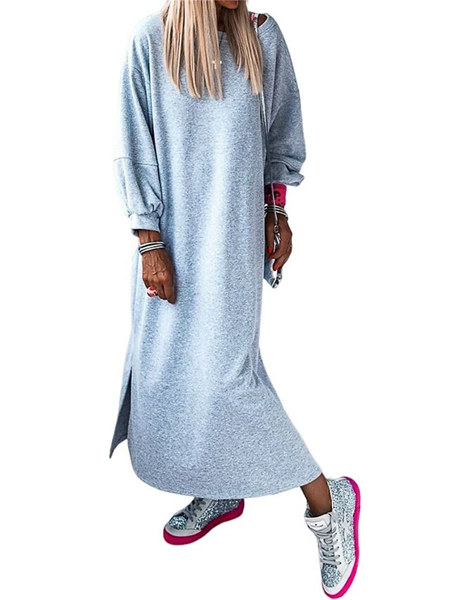 Women’s Casual Dress Sweatshirt Dress Winter Dress Long Dress Maxi Dress Split Outdoor Street Daily Active Fashion Crew Neck Long Sleeve 2023 Loose Fit Gray Color S M L XL Size