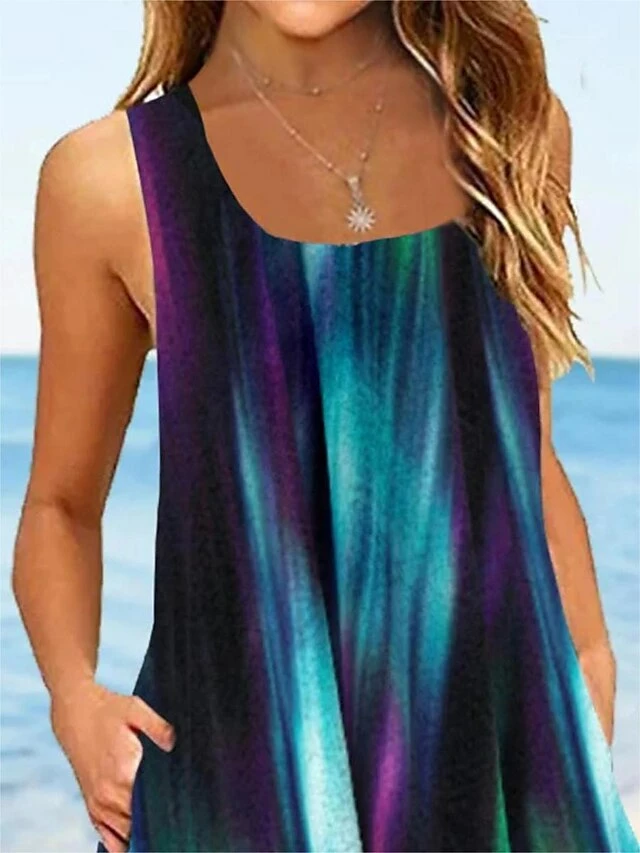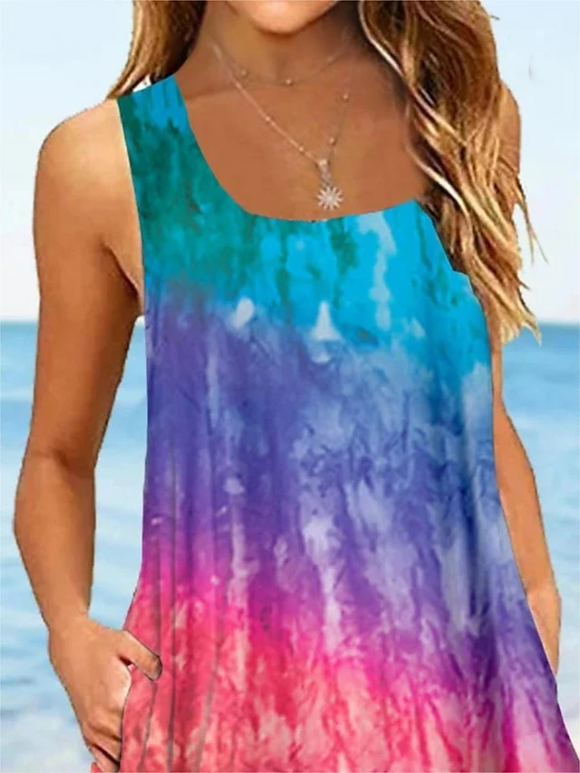 Women’s Casual Dress Tank Dress Summer Dress Graphic Color Block Print Crew Neck Mini Dress Fashion Classic Daily Holiday Sleeveless Loose Fit Black Pink Summer Spring S M L XL XXL