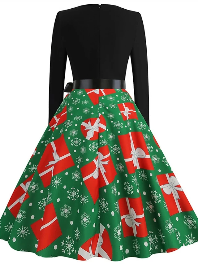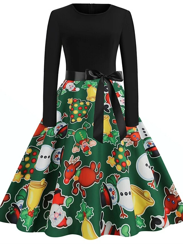 Women’s Christmas Swing Dress Vintage Dress Midi Dress Green Blue Light Green Long Sleeve Santa Claus Bow Winter Fall Autumn Crew Neck Fashion Daily Date 2022 S M L XL XXL 3XL