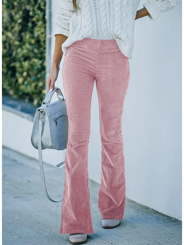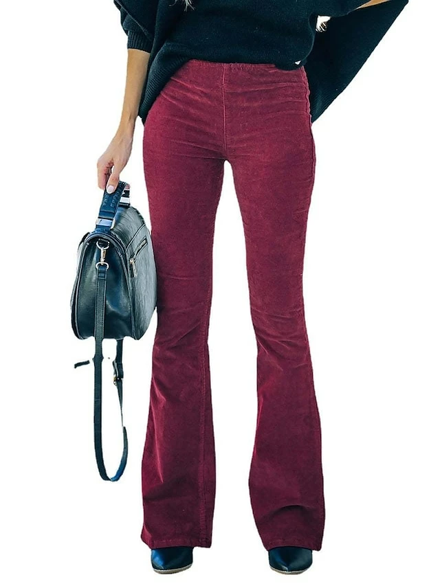 Women’s Dress Pants Bootcut Pants Trousers Full Length Corduroy Micro-elastic Medium Waist Fashion Casual Weekend Claret Black S M