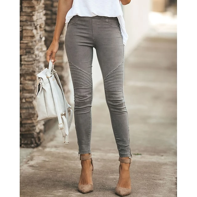 Women’s Dress Pants Tights Pants Trousers Ankle-Length Cotton Micro-elastic Mid Waist Fashion Casual Weekend Black Yellow S M Spring &Fall