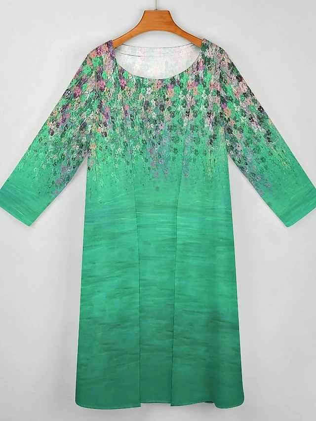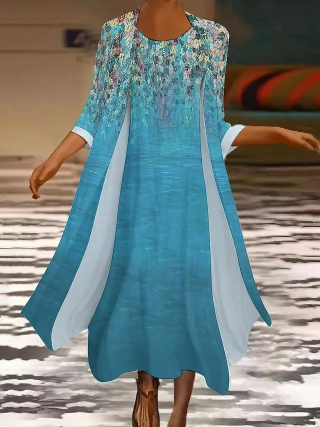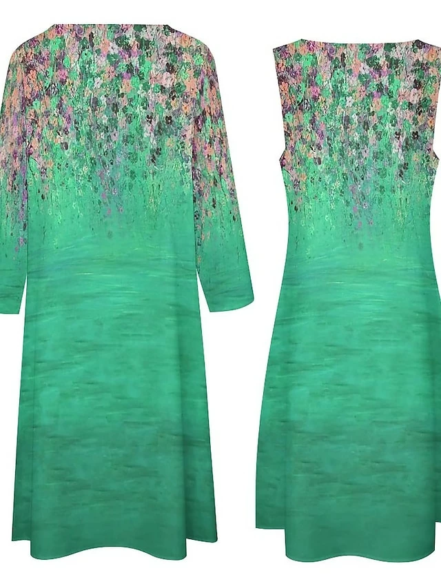 Women’s Dress Set Two Piece Dress Long Dress Maxi Dress Blue Green Long Sleeve Color Block Print Summer Spring Crew Neck Vacation Winter Dress Fall Dress Loose Fit 2023 S M L XL XXL 3XL 4XL 5XL