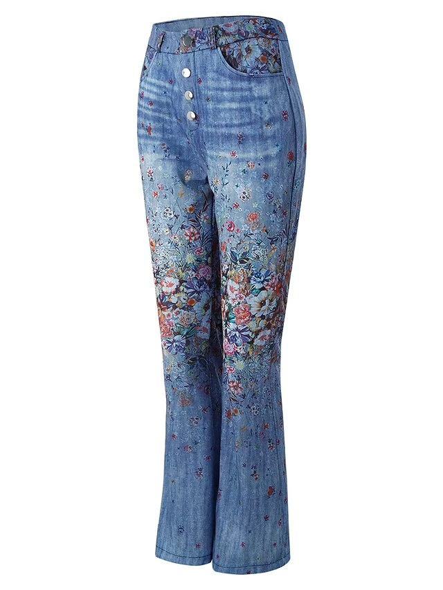 Women’s Jeans Bootcut Flared Pants Full Length Faux Denim Print High Elasticity High Waist Fashion Streetwear Casual Daily 1 2 S M Fall & Winter