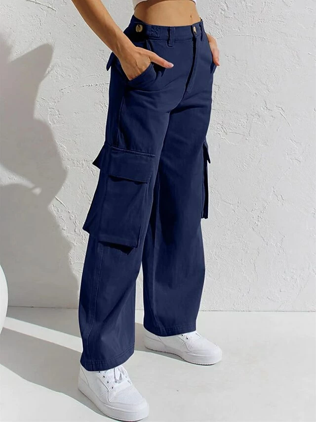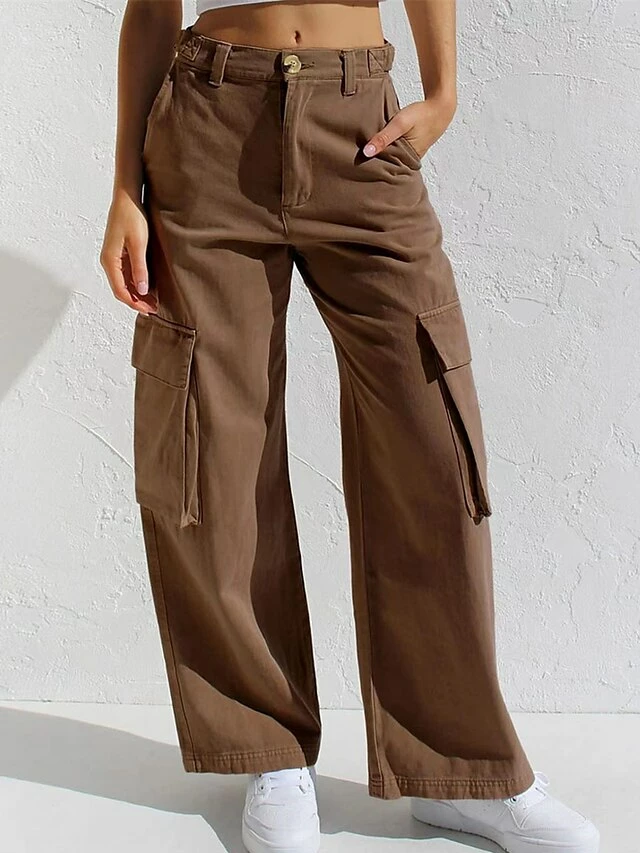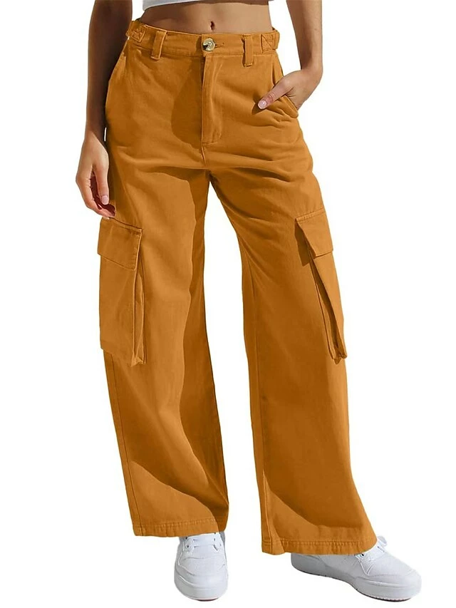 Women‘s Jeans Cargo Khaki Pants Full Length Cotton Pocket Micro-elastic Low Rise Streetwear Simple Outdoor Vacation Grey Black S M Summer Spring
