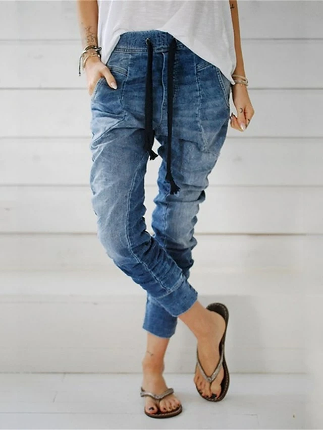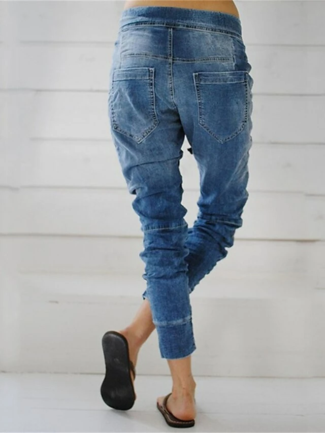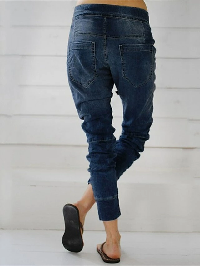 Women’s Jeans Pants Trousers Full Length Pocket Micro-elastic High Waist Streetwear Simple Outdoor Vacation Dark Blue LightBlue S M Summer Spring