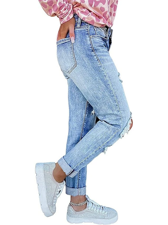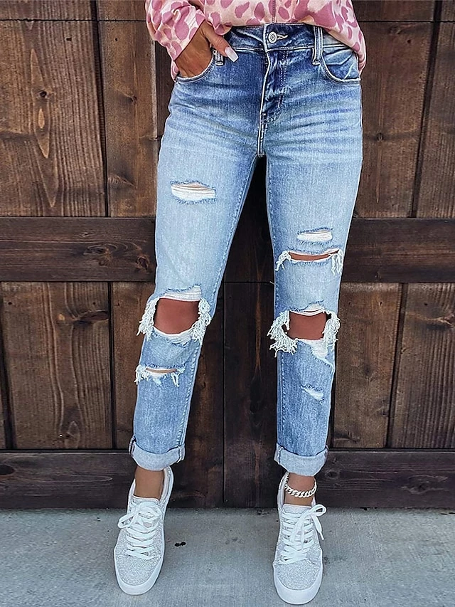 Women’s Jeans Skinny Pants Trousers Full Length Denim Ripped Micro-elastic Mid Waist Fashion Streetwear Street Daily Blue S M Fall Winter