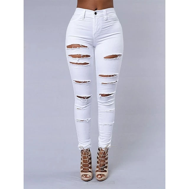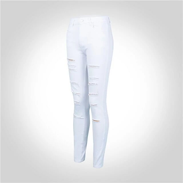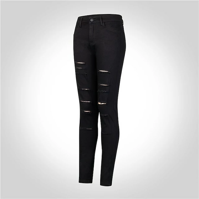 Women’s Jeans Trousers Pants Trousers Full Length Denim Side Pockets Cut Out Micro-elastic Mid Waist Fashion Casual Weekend Black White S M Summer Spring &Fall