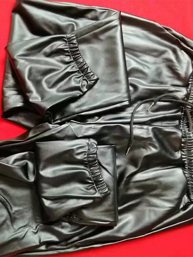 Women’s Joggers Leather Pants Pants Trousers Full Length Micro-elastic Mid Waist Fashion Streetwear Party Street Wine Apricot S M Summer Fall