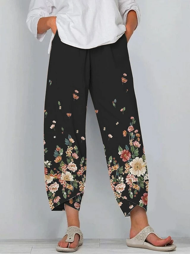 Women’s Linen Pants Baggy Full Length Faux Linen Pocket Baggy Stylish Casual Daily Casual Daily Wear Black Grey Milk White S M