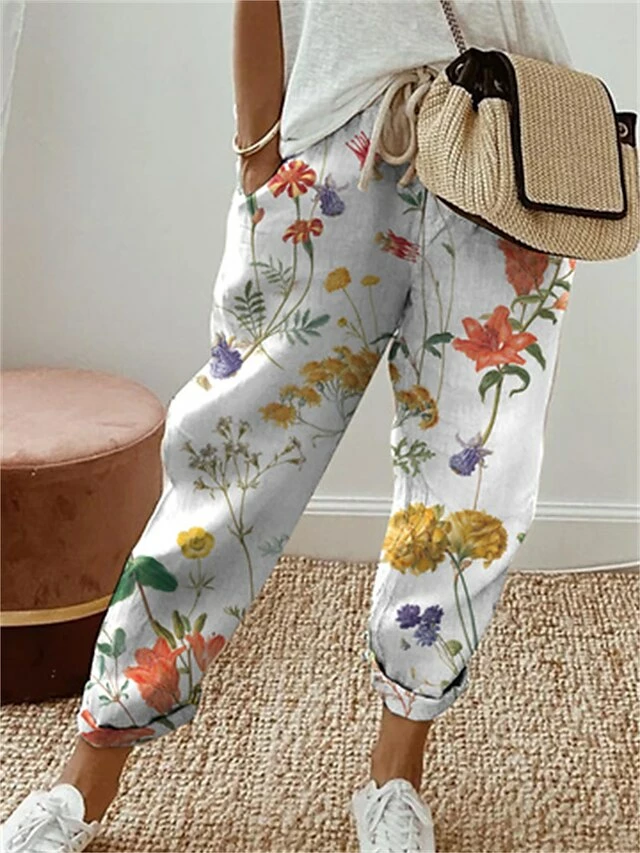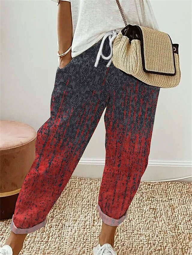 Women’s Linen Pants Pants Trousers Baggy Full Length Side Pockets Baggy Micro-elastic Fashion Holiday Weekend White Red S M