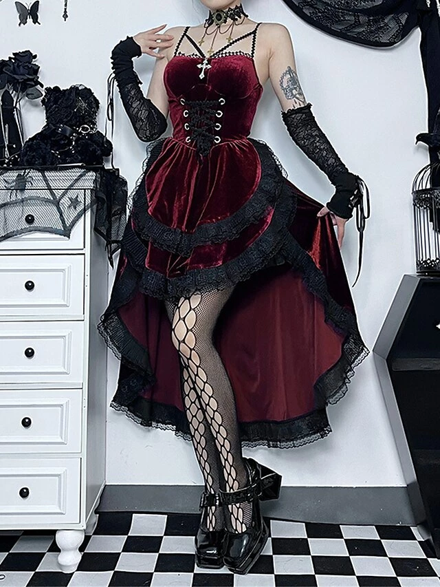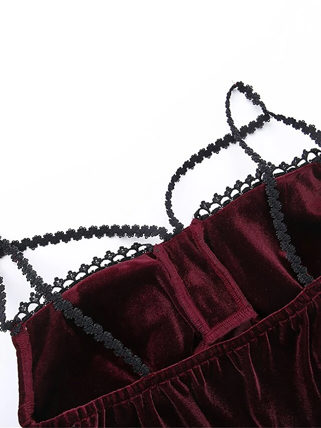 Women’s Party Dress Lace Dress Cocktail Dress Midi Dress Black Wine Purple Sleeveless Pure Color Lace Spring Fall Winter Spaghetti Strap Fashion Halloween Birthday Wedding Guest 2023 S M L