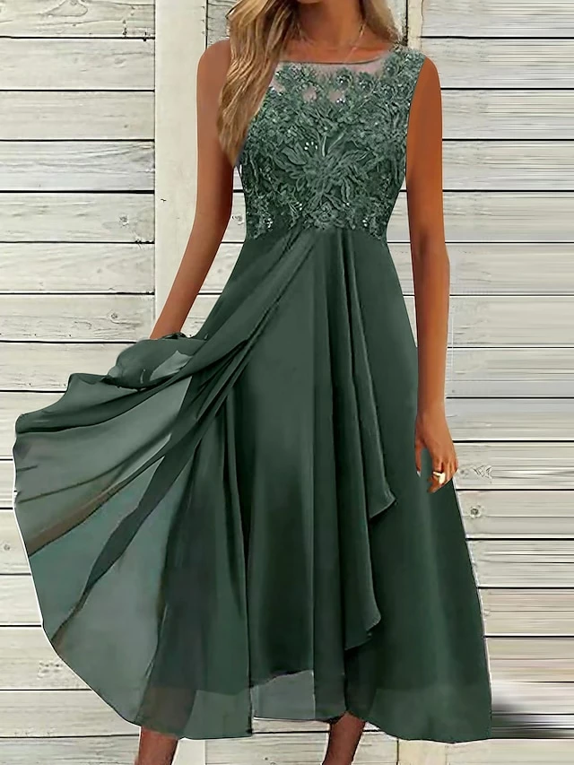 Women’s Party Dress Lace Dress Cut Out Dress Midi Dress Blue Purple Green Sleeveless Pure Color Lace Summer Spring Fall Crew Neck Fashion Evening Party Wedding Guest Vacation Loose Fit 2023 S M L XL