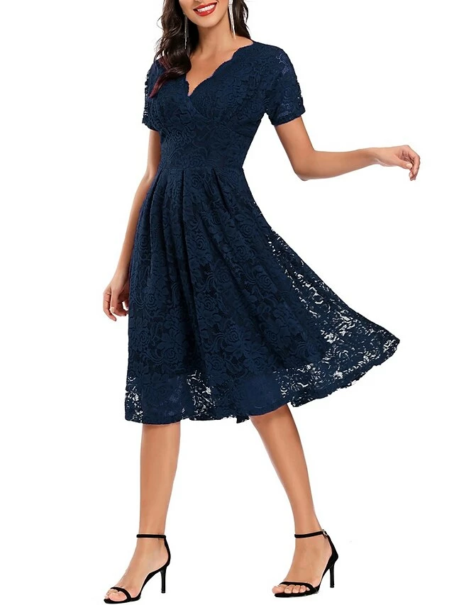 Women’s Party Dress Lace Dress Homecoming Dress Midi Dress Black Pink Wine Short Sleeve Pure Color Lace Summer Spring Fall V Neck Fashion Evening Party Wedding Guest Fall Dress 2023 S M L XL