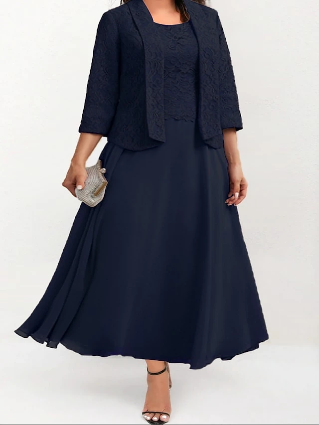 Women‘s Plus Size Curve Dress Set Solid Color Crew Neck Half Sleeve Spring Fall Elegant Maxi Long Dress Formal Party Dress
