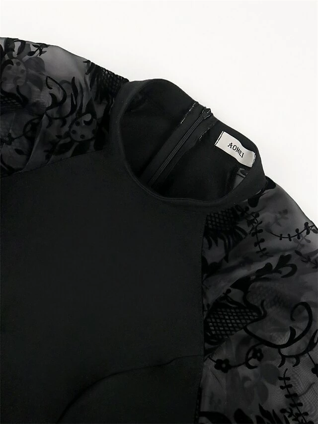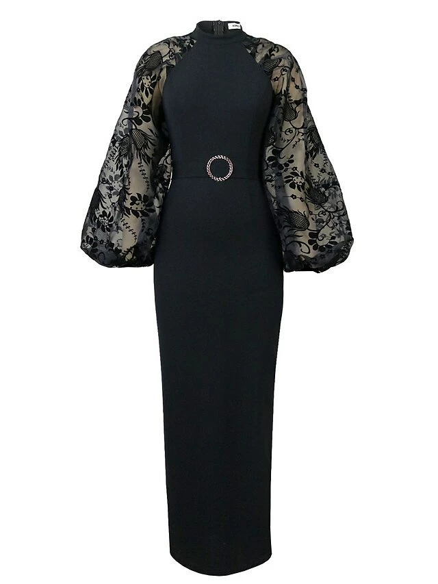 Women’s Plus Size Curve Party Dress Black Dress Formal Dress Plain Long Dress Maxi Dress Long Sleeve Lace Stand Collar Fashion Party Black Fall Winter XL XXL 3XL 4XL