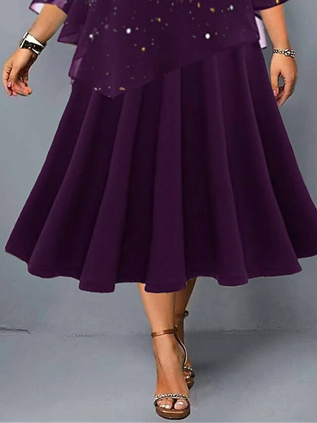 Women’s Plus Size Curve Party Dress Cocktail Dress Swing Dress Gradient Midi Dress 3/4 Length Sleeve Layered Print Crew Neck Fashion Party Purple Fall Winter L XL XXL 3XL 4XL