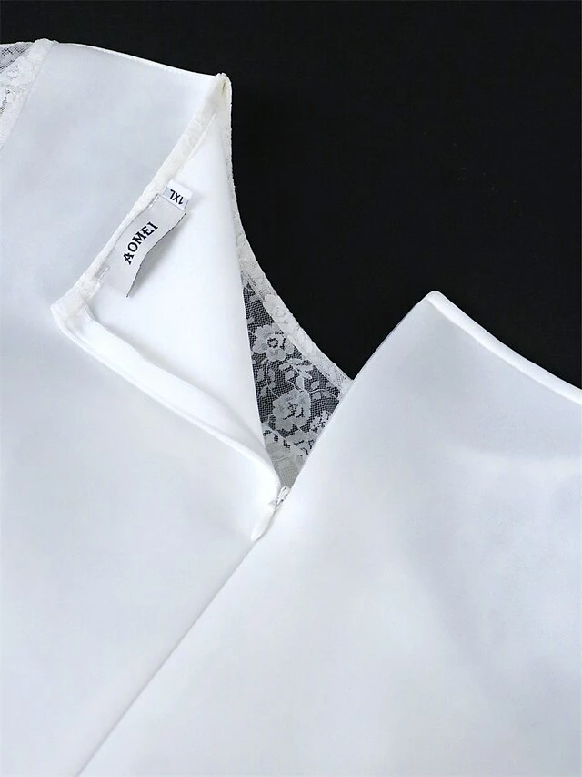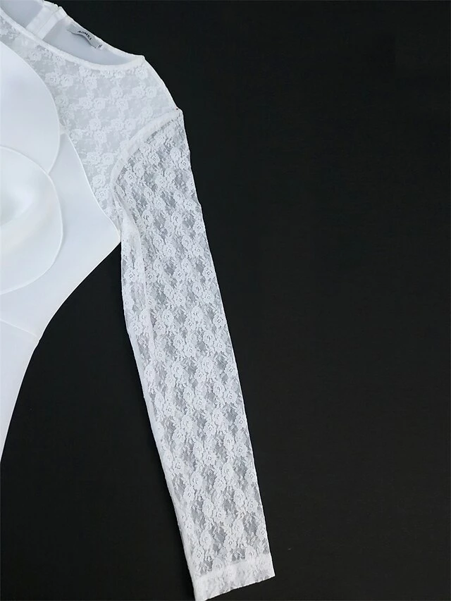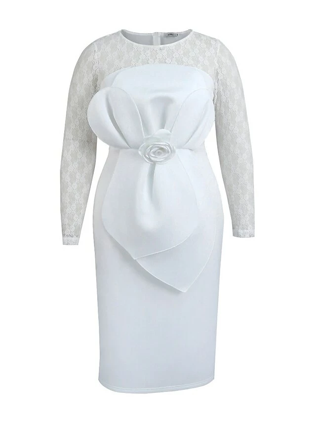 Women’s Plus Size Curve Party Dress Lace Dress Bodycon Plain Midi Dress Long Sleeve Lace Bow Crew Neck Fashion Party White Fall Winter XL XXL 3XL 4XL