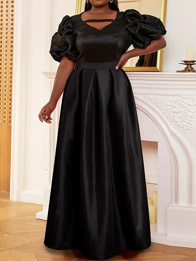 Women’s Plus Size Curve Party Dress Swing Dress Black Dress Plain Long Dress Maxi Dress Short Sleeve V Neck Fashion Party Black Fall Winter XL XXL 3XL 4XL