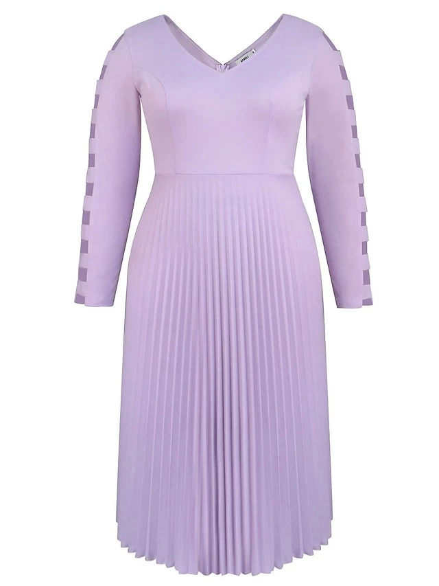 Women’s Plus Size Curve Party Dress Work Dress Swing Dress Plain Midi Dress Long Sleeve Pleated Cut Out V Neck Fashion Party Purple Fall Winter XL XXL 3XL 4XL