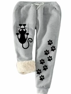 Women’s Plus Size Fleece Pants Joggers Print Animal Sporty Casual Daily Natural Full Length Winter Fall Gray L XL XXL 3XL 4XL / Cotton