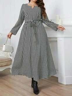 Women’s Plus Size Party Dress Wedding Guest Dress Tunic Dress Long Dress Maxi Dress Black Long Sleeve Plaid With Belt Spring Fall Winter V Neck Fashion Winter Dress Evening Party Wedding Guest 2023