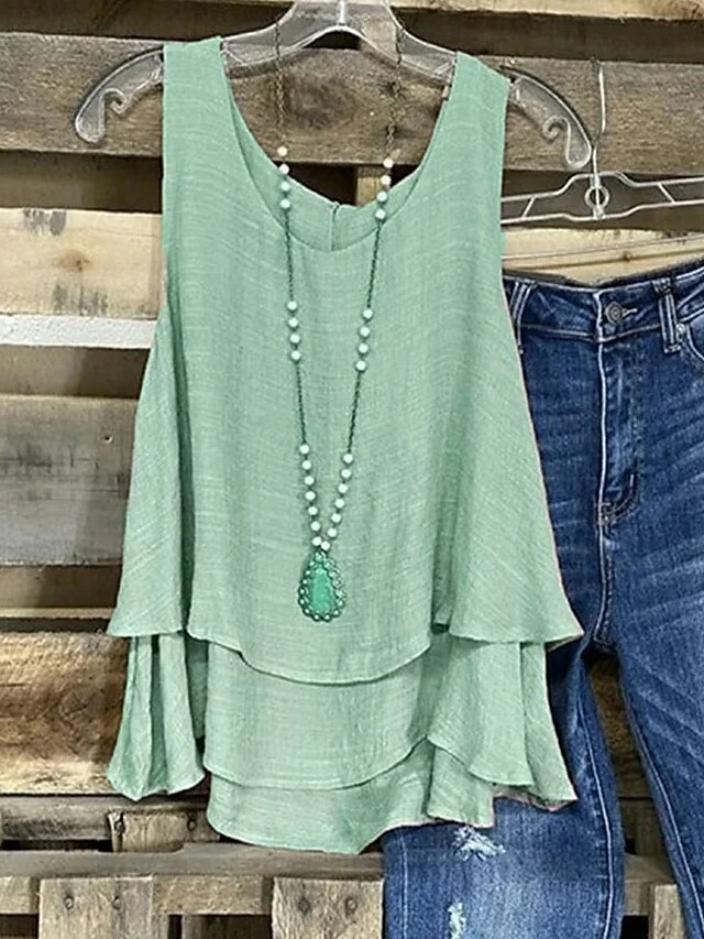 Women’s Plus Size Tank Top Black Blue Purple Plain Layered Sleeveless Casual Basic U Neck Regular Fit