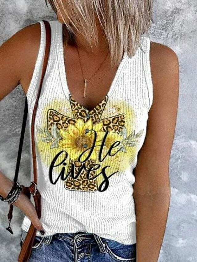 Women’s Plus Size Tank Top Going Out Tops Vest Concert Tops Light Green Blue Khaki Floral Ethnic Button Print Sleeveless Holiday Streetwear Casual V Neck Regular Fit Floral