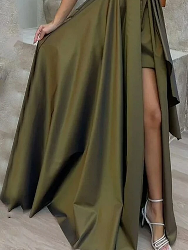 Women’s Prom Dress Party Dress Satin Dress Long Dress Maxi Dress Army Green Sleeveless Pure Color Ruffle Spring Fall Winter One Shoulder Fashion Winter Dress Evening Party Wedding Guest 2023 S M L XL