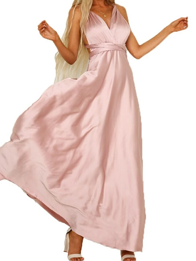 Women’s Prom Dress Wedding Guest Dress Satin Dress Long Dress Maxi Dress Pink Navy Blue Green Sleeveless Pure Color Backless Summer Spring Fall V Neck Fashion Party Evening Party Wedding Guest 2023