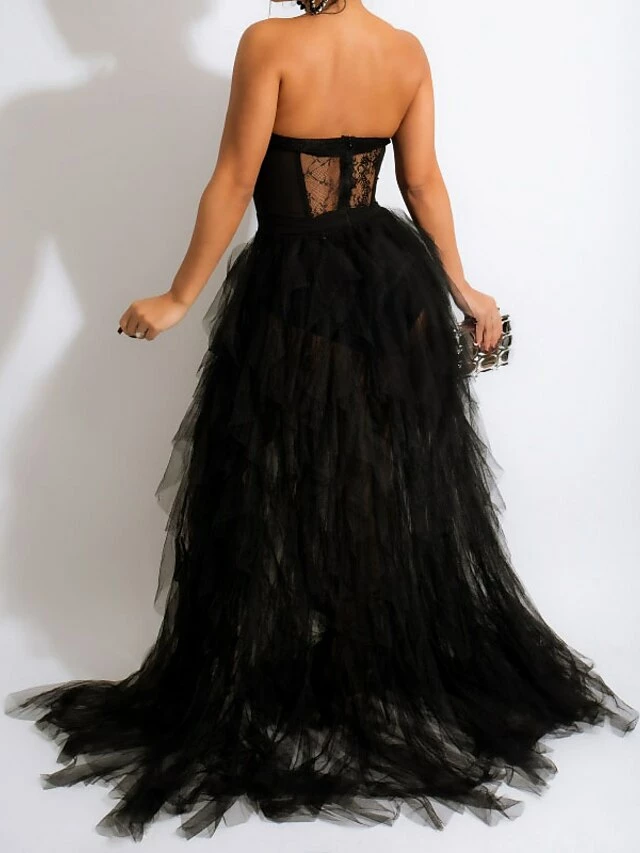 Women‘s Prom Party Dress Black Dress Long Dress Maxi Dress Red Sleeveless Pure Color Lace Winter Fall Autumn Strapless Party 2023 S M L XL XXL 3XL 4XL 5XL