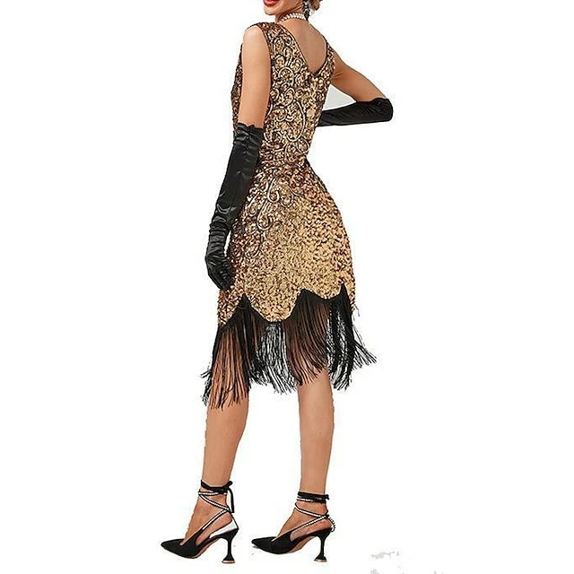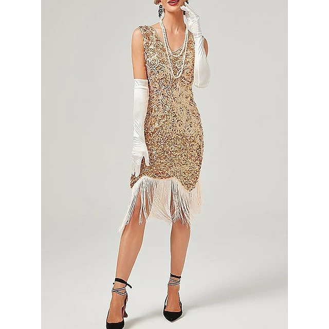 Women’s Retro 1920s Fringe Dress Midi Dress Party Halloween Sequins Tassel Fringe Floral V Neck Sleeveless Regular Fit Spring Fall 2023 Black Pink XS S M L