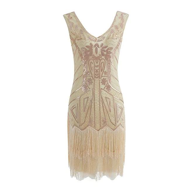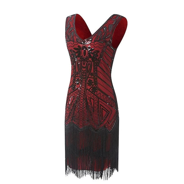 Women’s Retro 1920s Fringe Dress Midi Dress Party Halloween Sequins Tassel Fringe Floral V Neck Sleeveless Regular Fit Spring Fall 2023 Silver Red S M L XL
