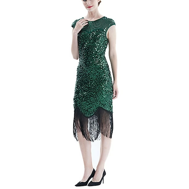 Women’s Retro 1920s Fringe Dress Midi Dress Party Halloween Sequins Tassel Fringe Geometric Crewneck Sleeveless Regular Fit Spring Fall 2023 Black Pink S M L XL